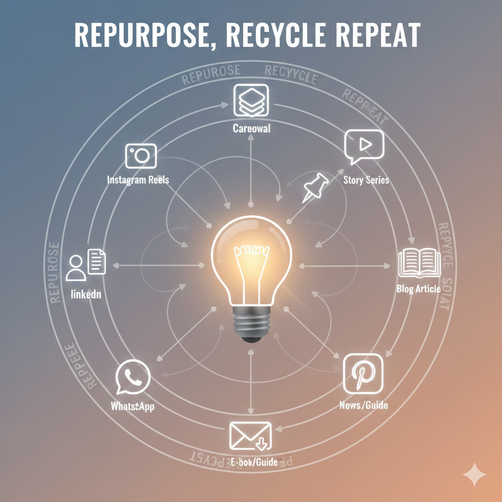 Repurposing content isn’t cheating — it’s the smartest way to stay consistent, save time, and grow on multiple platforms.